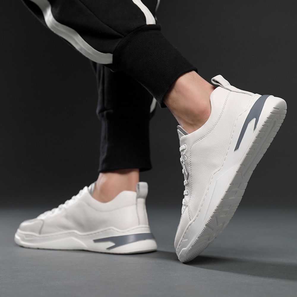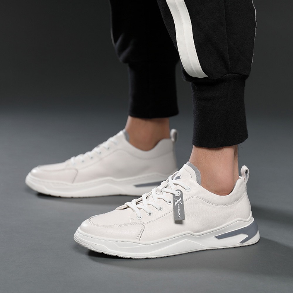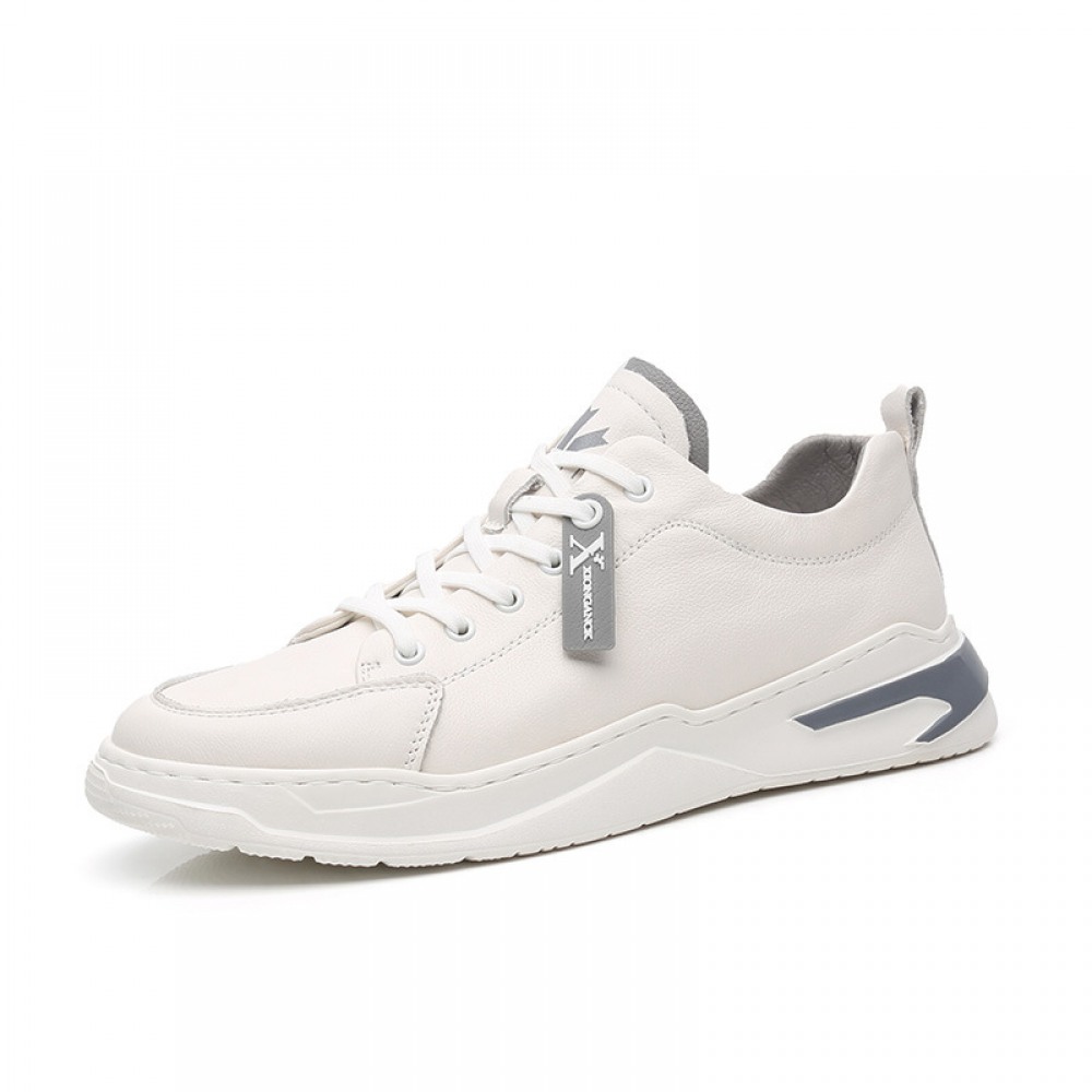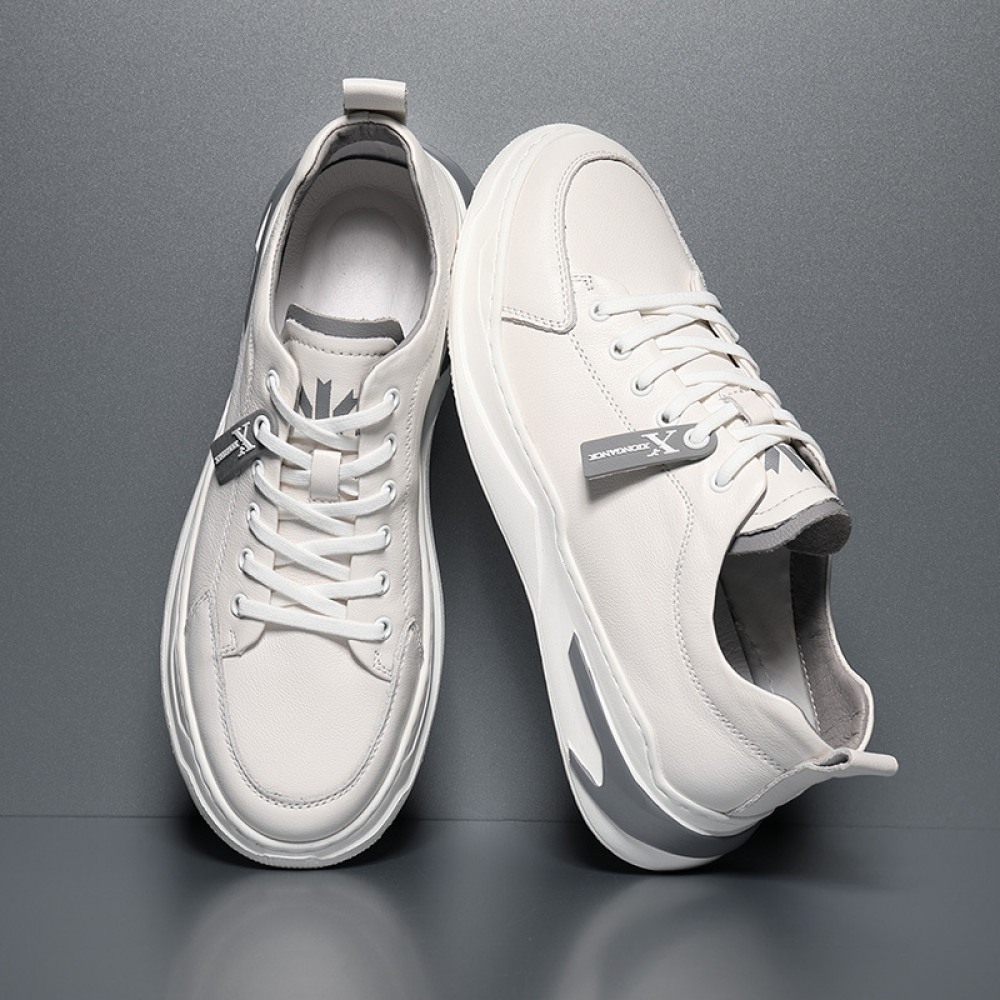 Autumn New Men's Shoes Leather Casual White Shoes Hot Style Trendy Lace Up Sports Shoes