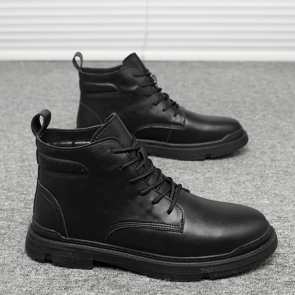 Autumn New Leather Men's Leather Boots Front Lace-Up Low-Heel Martin Boots Mens Shoes