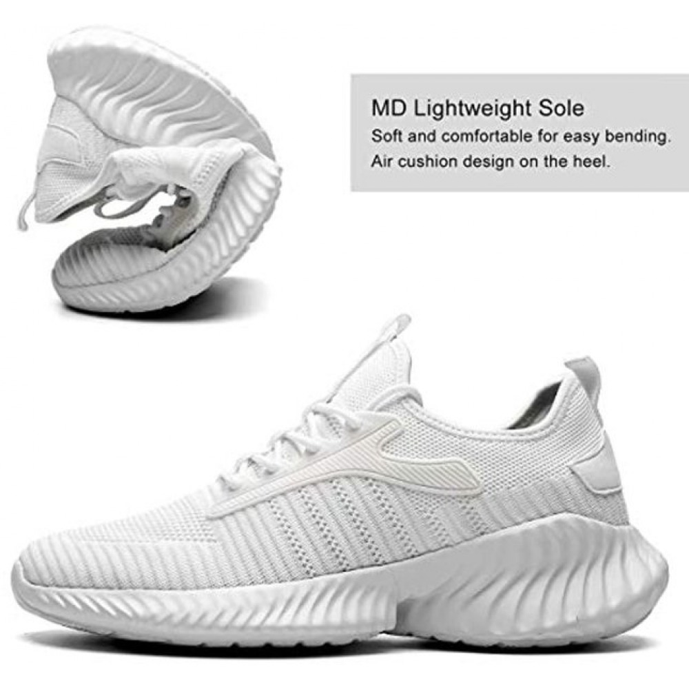 Men's Lightweight Breathable Mesh Street Sport Walking Shoes Casual Sneakers for Sports Gym Walking White